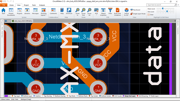 I have mounted the TTL connector reversed because the 3D view on CircuitMaker is reversed and the one pin of robotis is not the 1 pin of the connector but the last one⦠I will need to make it easyer for users. I plug it on a robot so the 5V push/pull output of the driver has been short-circuited to GND⦠Hipi continuing to work